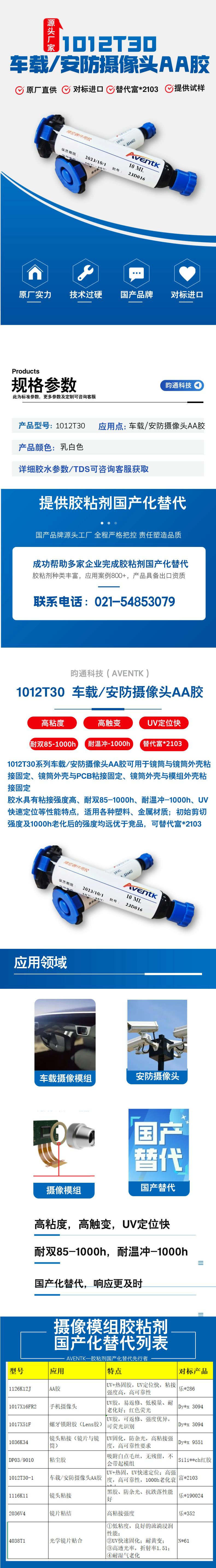 1036T30系列車(chē)載/安防攝像頭AA膠可用于鏡筒與鏡筒外殼粘接固定、鏡筒外殼與PCB粘接固定、鏡筒外殼與模組外殼粘接固定,膠水具有粘接強度高、耐雙85-1000h、耐溫沖-1000h、UV快速定位等性能特點(diǎn),適用各種塑料、金屬材質(zhì);初始剪切強度及1000h老化后的強度均遠優(yōu)于競品,可替代富*2103