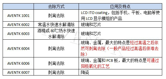 AVENTK UV可剝藍膠應用和型號列舉