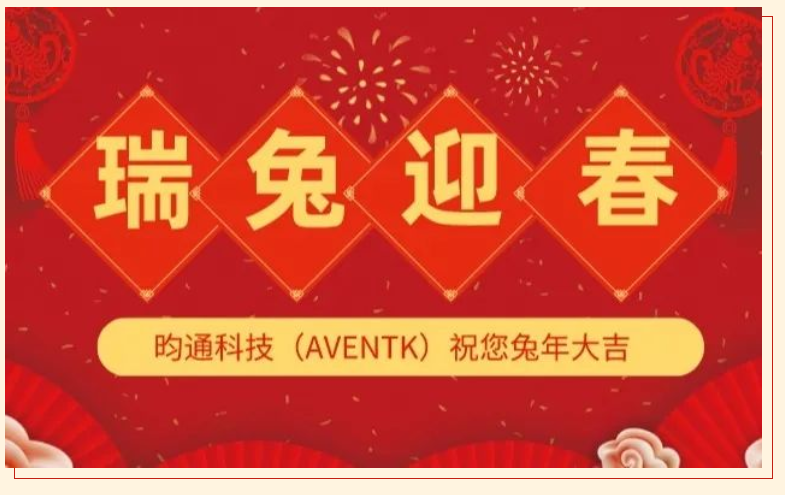 值此佳節吉時(shí),昀通科技(AVENTK)攜全體同仁第一時(shí)間為您獻上新春祝福,祝您在新的一年里兔來(lái)運轉、福兔呈祥、兔年大吉!